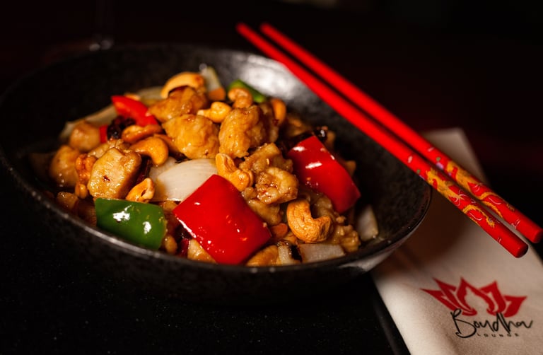 Mains- Kung Po chicken(classic Sichuan-style sauce, cashew nuts, peppers )