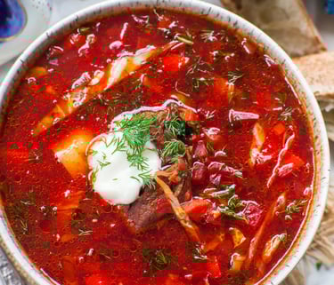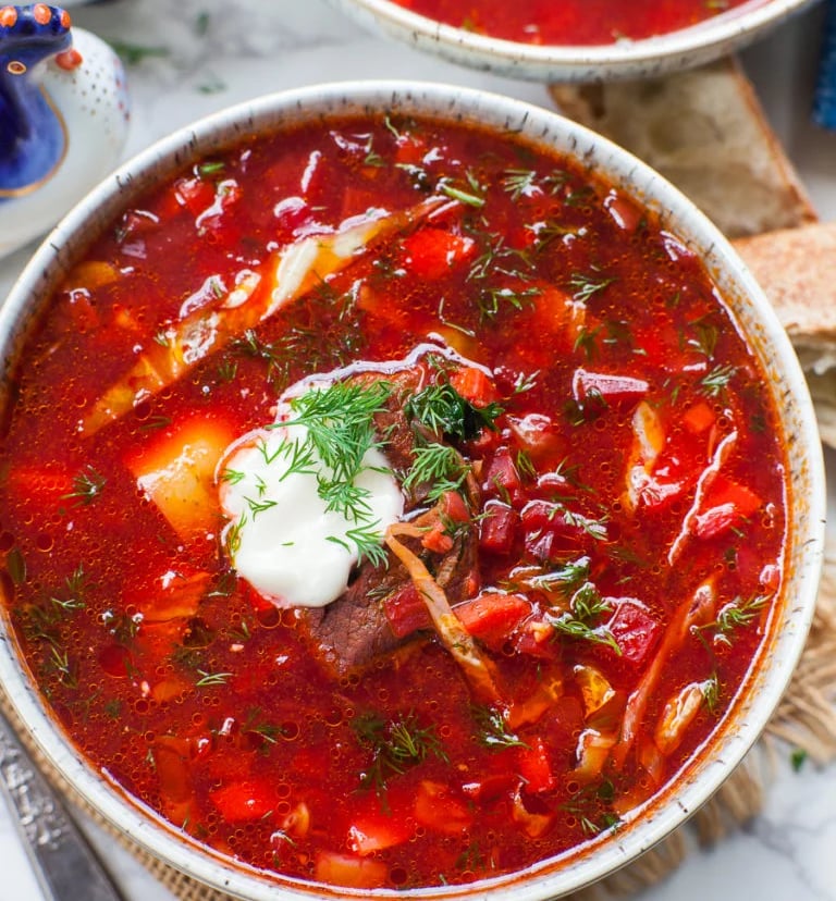 Klasik Borş Çorbası – (sığır eti, pancar, lahana, domates, patates, taze otlar)